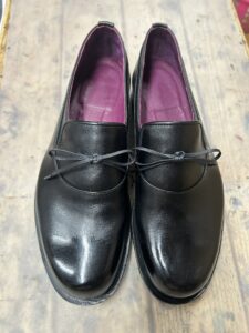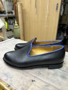 木型補正、釣り込みが望ましくできたことから、スリップオンの靴の履き口が足に寄り添っています。