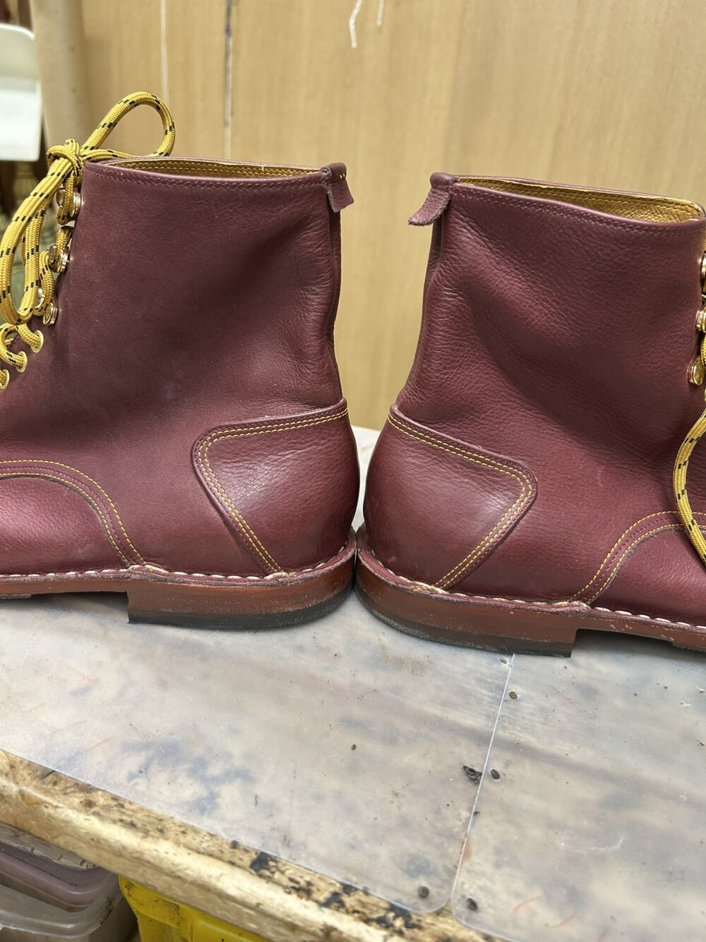 靴は、後ろから見るとしっかり作られているか分かりやすい。 |