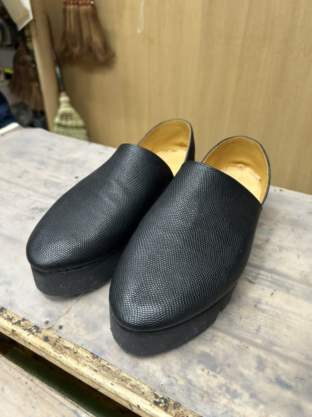 生徒さんは自分で作った靴を履いています。 |