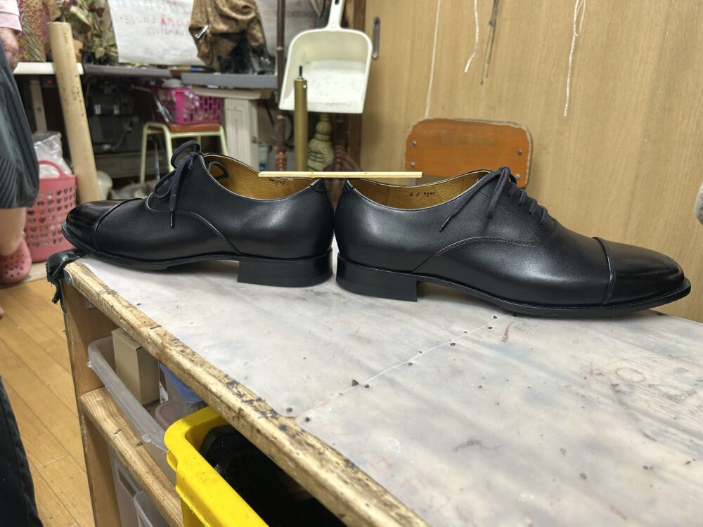 ヒールの高さ、踵の深さ、ヒールの大きさ、左右合ってます。手作り靴のチェックポイント