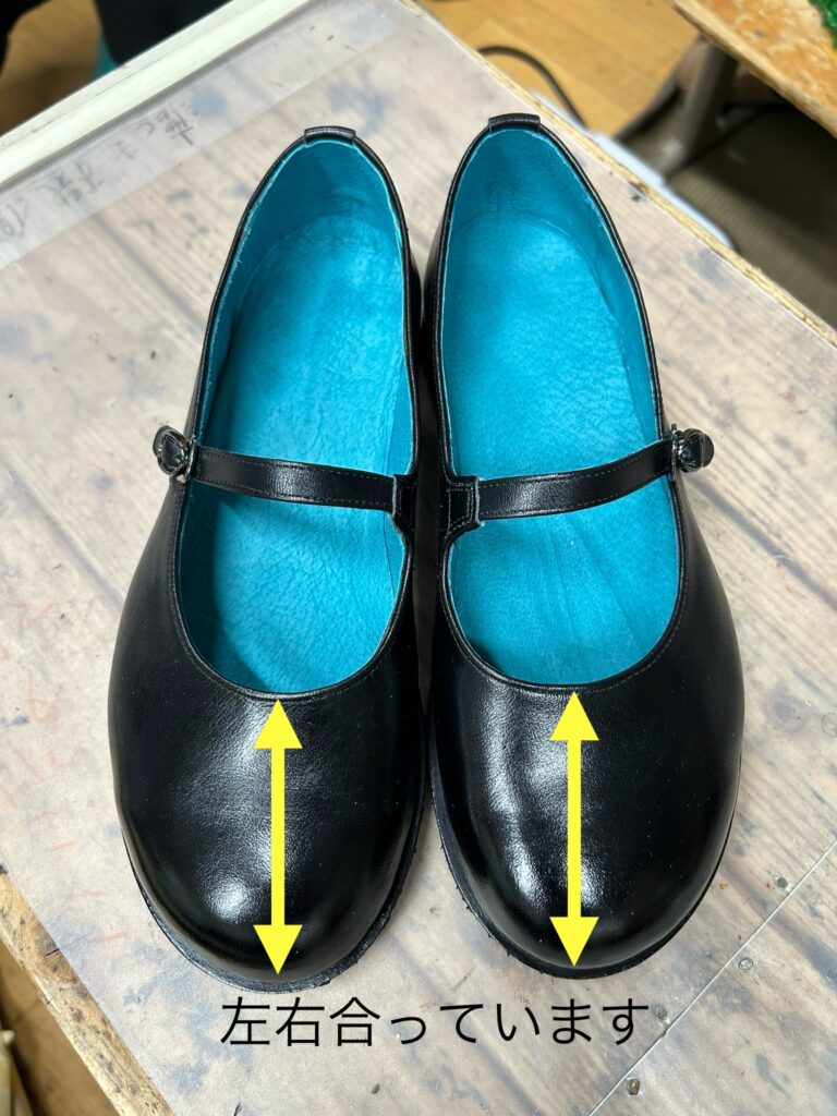 そのため、少しの傾きにも注意を払い、地面との接地、ヒールの角度、履き口の高さまで点検しながら仕上げます。